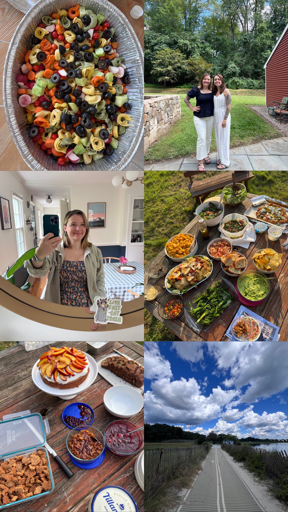 debut novel You’re Safe Here in just about six days (the fastest I’ve read anything recently), catching up with friends at Gastropark over pierogi’s from Smetana (My favorite food truck there!) and thrifting a NWT Old Navy dress from Vagabond trading company as well as a brand new Bills baseball cap at Refill Vintage. We also got to celebrate Alexa’s grandmother’s 91st birthday with an outdoor BBQ on an absolutely stunning Sunday evening, followed by another birthday for our friends son on the holiday. The weather over Labor Day Weekend was PEAK New England Summer and I’m happy to say I enjoyed so much of it. Our staycation was definitely a reminder that rest and leisure doesn’t always require travel.Another noteworthy highlight from earlier this summer: joining a cookbook club with friends. Our first pick was Wishbone Kitchen by Meredith Hayden and we shared dishes potluck-style while dining al fresco on a balmy August evening. My heirloom tomato galette with burrata was a hit, but so was the whipped ricotta with crispy garlic, the shake and bake chicken, and peach olive oil cake. Since then, I’ve remade several recipes including the sungold tomato pasta with my mom which was… chefs kiss, 10/10, NO NOTES.
