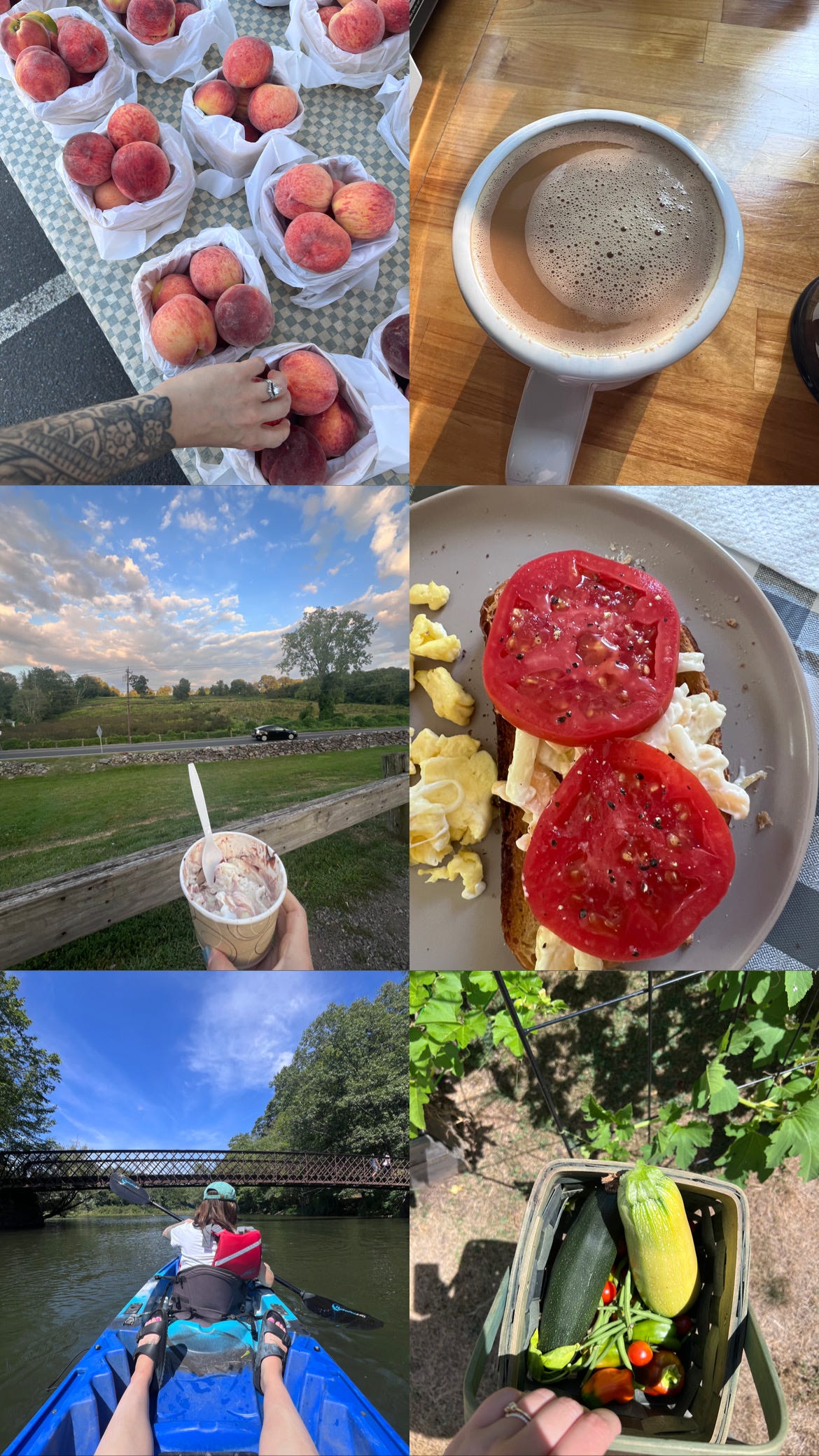 Lunch was another area I consciously slowed down. Instead of wolfing down snacks at my desk, Alexa and I blocked the same hour in our calendars and made it a ritual to sit together. Sometimes on the patio, which felt downright luxurious. Our rotation included chicken salad, air fryer chicken wraps, eggs with tomato toast, and a steady stream of stone fruits eaten over the sink (nectarines were the star of our summer). Of course, things do come up but priortizing this time during the day has been a small luxury with big payoffs. I feel more productive in the mornings, knowing I have an upcoming break mid-day, and more focused in the later half of the day, when I tend to procrastinate or catch myself scrolling.